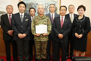 ![]() 陸上自衛隊松山駐屯地の幹部と 懇談の様子 |