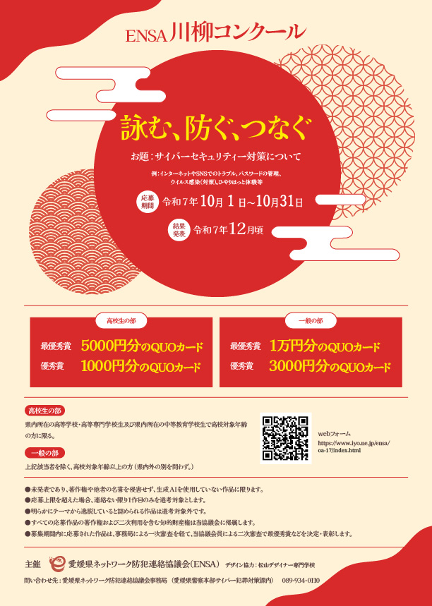 宛先 | ensa@iyo.ne.jp(応募専用メールアドレス) |